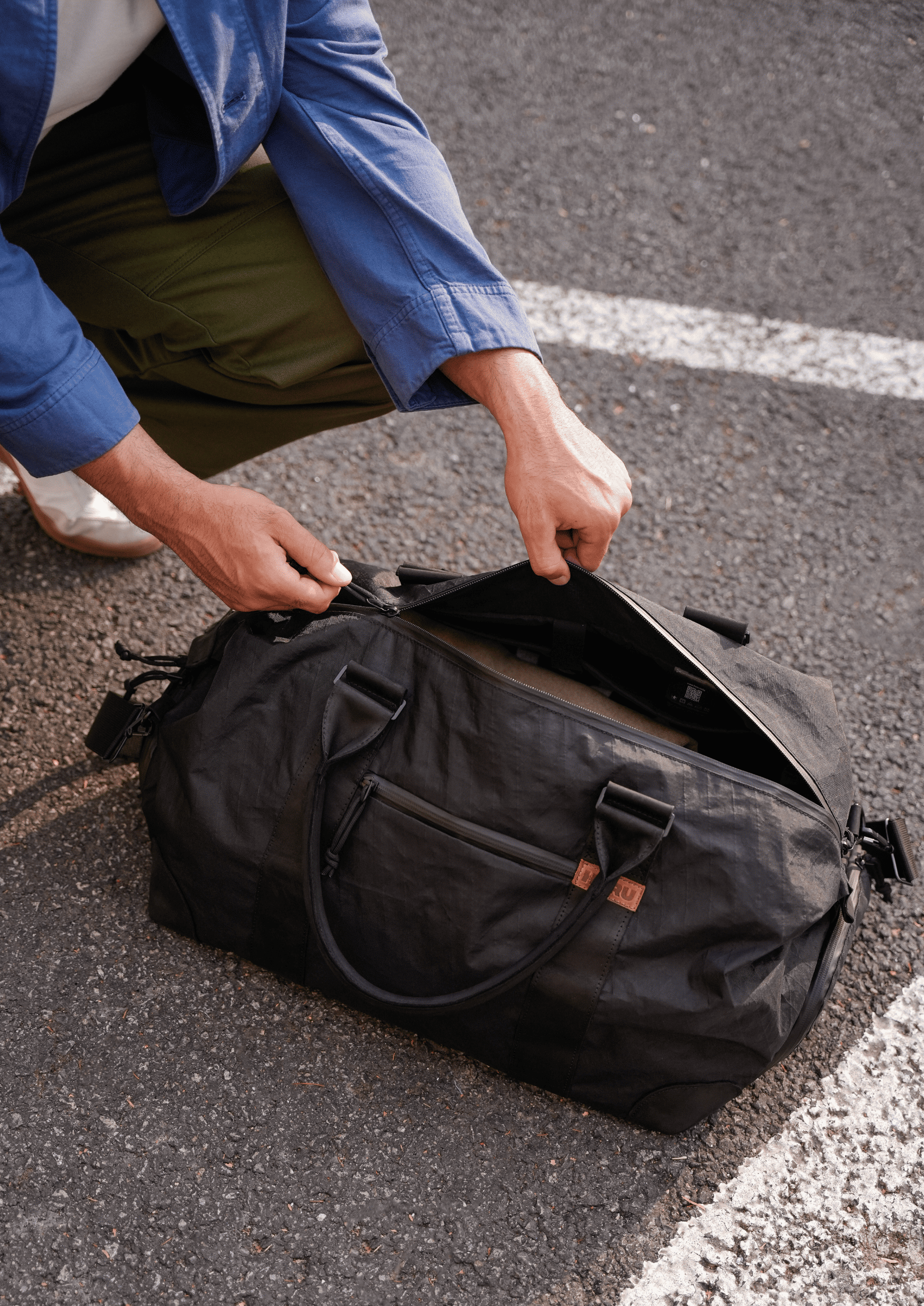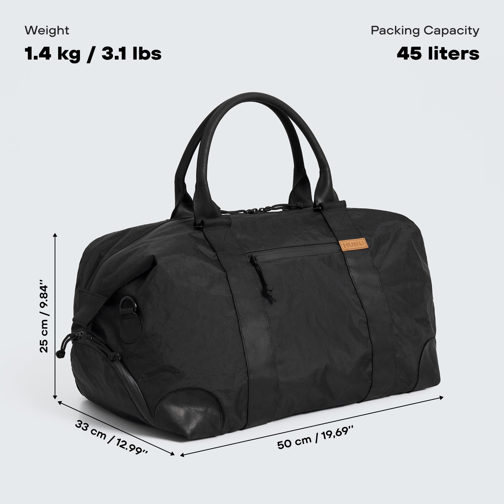 Avoid machine washing. If the bag gets dirty, clean the spot with mild soap and a cloth dampened in warm water. Let it air-dry naturally, well away from direct heat sources. Regular care will keep your HURU Weekender bag in great condition for many years.